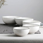 وعاء سيراميك أبيض مصنوع في اليابان بحواف سوداء - خط أسود/4.5 أوعية