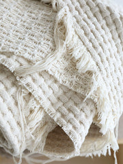 Beige Woven Cotton Throw Blanket - Cozy and Stylish