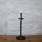 The dark metal feels substantial in hand. Light dances across the varied textures of the chain links, a quiet display of human craft. This piece brings a grounding presence to any surface, proving a modern candle holder can offer a sense of enduring strength. It holds a single taper candle, its flame a gentle pulse of warmth.