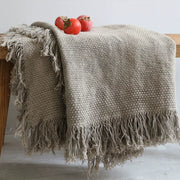 Linen Throw Blanket with Fringes - Various Colors - A / 45x200cm
