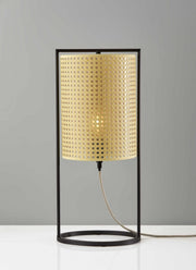 A modern spin on bohemian inspiration, this tall table lantern lamp creates a warm and calming ambience in the home. A webbed natural cane shade reveals a beautiful, soothing glow when lit. A convenient rocker switch is located on a decorative beige fabric covered cord. Bulb is not included.