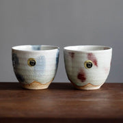 Shiraku-Yaki Tea Cup Imported From Japan With Ice Cracked Glaze 10.14oz | Ceramic Master Cup, Japanese Handmade, Personal Cup - Qingyu Holding a Cup