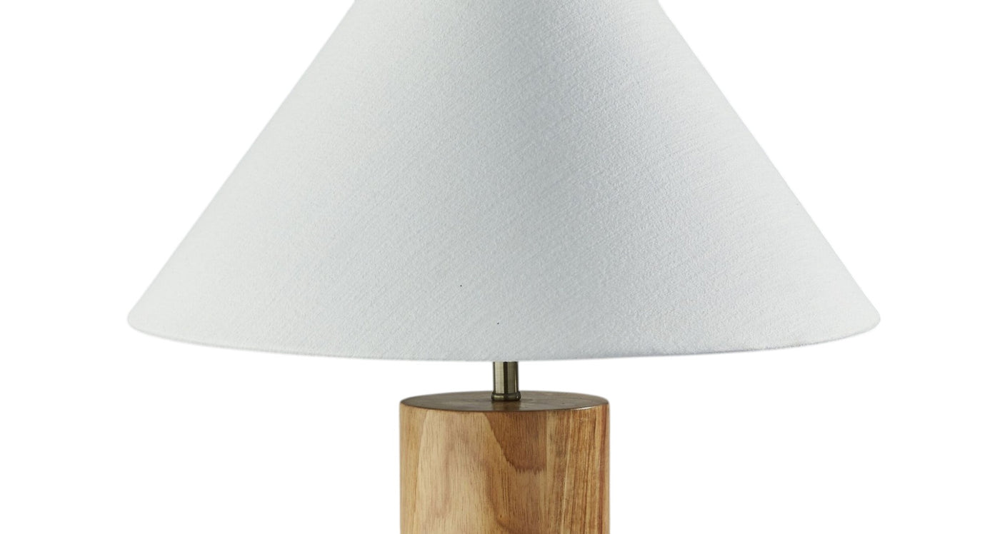Elevate your space with the natural beauty of this 26" solid wood cylinder table lamp. Crafted from sturdy, natural oak with a warm brown finish, its minimalist design brings a touch of organic elegance to any room. The clean lines of the cylindrical base are perfectly complemented by the soft glow emanating from the textured white cone shade, creating a welcoming and serene ambiance.