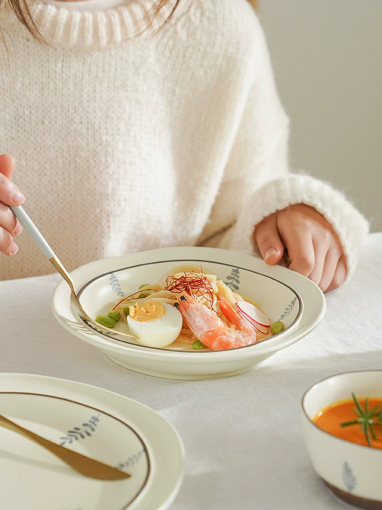 Nordic Lavender Series Porcelain Tableware Set - Microwave & Oven Safe Bowls, Plates, & Cups - 8-inch deep dish
