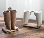 Jarrón de cerámica de cerámica rugosa con textura de tubo doblado importado de Japón - Contenedor de flores de tubo plegable (blanco)