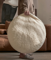 Fluffy Round & Square Bean Bag Chair Cushions, Cozy Seating for Living Room, Bedroom, & More - White lamb dumpling round cake
