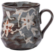 Tazas Shino-Yaki importadas de Japón para primavera, verano, otoño e invierno, 8.8 oz | Tazas de café retro japonesas, tazas de cerámica, tazas de té - Gris con flores