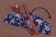 Utensilios de cocina japoneses de madera con estuche de tela | Juego de cucharas, madera natural