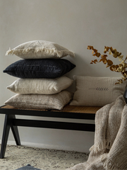 Boho Throw Pillows & Blanket Set - Beige, Black, Natural - Woven Cushions for Living Room - Quiet pillow f01-45 / Organic feather silk cotton
