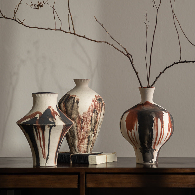 Abstract Drip Glaze Ceramic Vases - Handmade Decorative Pottery for Home Decor