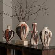 Elevate your space with these unique abstract drip glaze ceramic vases. Each handmade piece features a striking blend of earth tones and organic textures, perfect for adding a touch of artistic flair to any room. Ideal for dried flowers or as standalone sculptural elements.