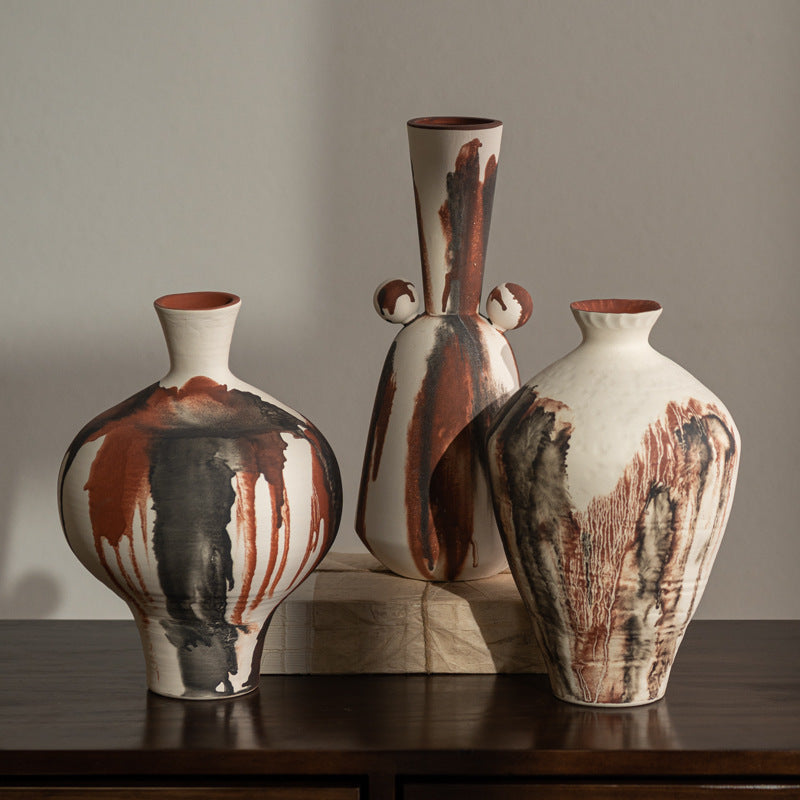 Abstract Drip Glaze Ceramic Vases - Handmade Decorative Pottery for Home Decor - A