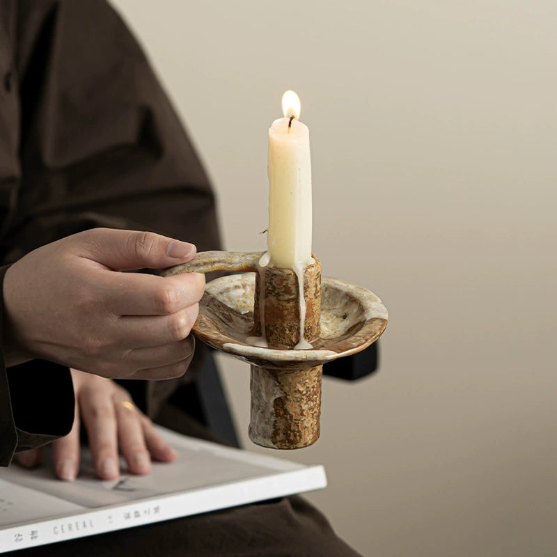 Guinon Aroma Series Ceramic Candlestick Holder with Handle - Rustic Vintage Style