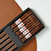Set of 5 Dark Wood Chopsticks With a Gold Cherry Leaf