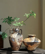 Celebrate the beauty of irregularity and natural aesthetics with these rustic, stone-like vases. Each arrives in a different package, underscoring the handmade charm and individuality of every piece.